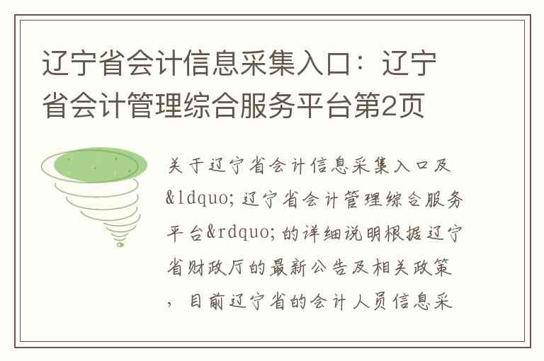 根据辽宁省财政厅的最新公告及相关政策,目前辽宁省的会计人员信息采集业务已经做出了重要调整。以下为您详细说明第2页所涉及的内容、服务、官方地址及联系方式。