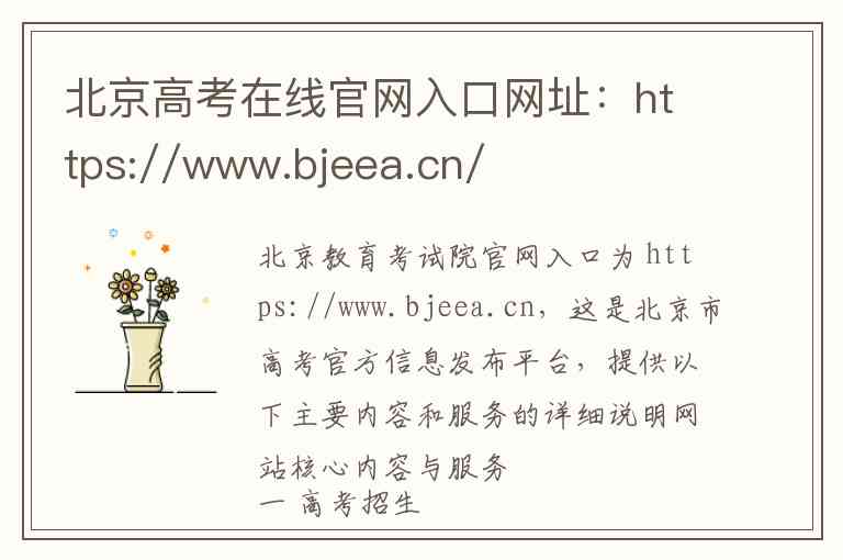 北京教育考试院官网入口为 https://www.bjeea.cn,这是北京市高考官方信息发布平台,提供以下主要内容和服务的详细说明