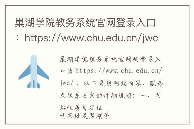 巢湖学院教务系统官网的登录入口为 https://www.chu.edu.cn/jwc/ ,以下是该网站内容、服务及联系方式的详细说明: