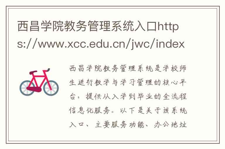 西昌学院教务管理系统是学校师生进行教学与学习管理的核心平台,提供从入学到毕业的全流程信息化服务。以下是关于该系统入口、主要服务功能、办公地址及联系方式的详细说明。