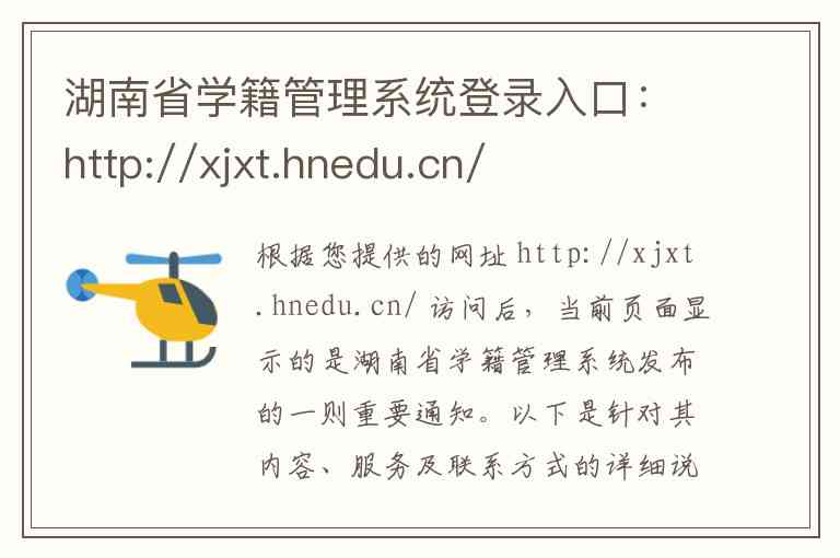 根据您提供的网址 http://xjxt.hnedu.cn/ 访问后,当前页面显示的是湖南省学籍管理系统发布的一则重要通知。以下是针对其内容、服务及联系方式的详细说明: