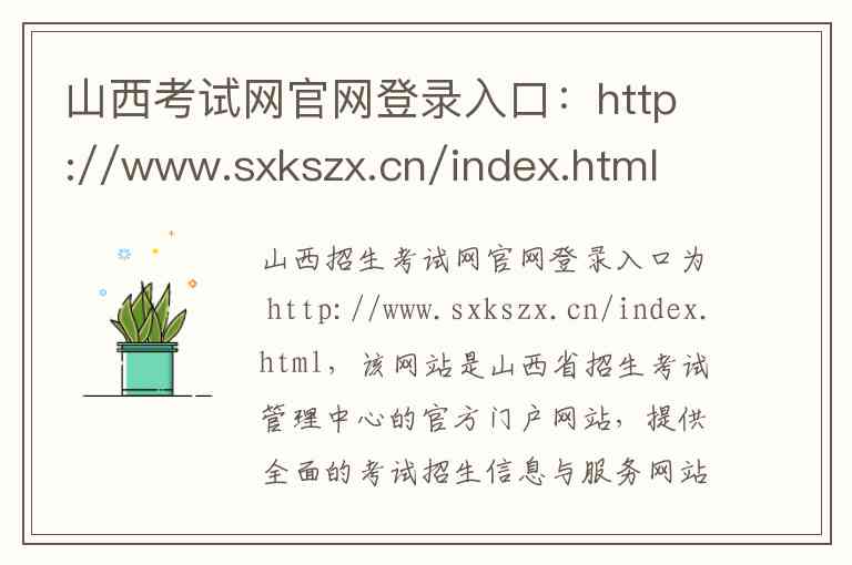 山西招生考试网官网登录入口为 http://www.sxkszx.cn/index.html,该网站是山西省招生考试管理中心的官方门户网站,提供全面的考试招生信息与服务