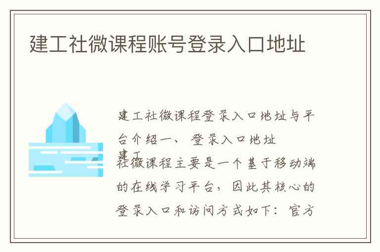 建工社微课程主要是一个基于移动端的在线学习平台,因此其核心的登录入口和访问方式如下: