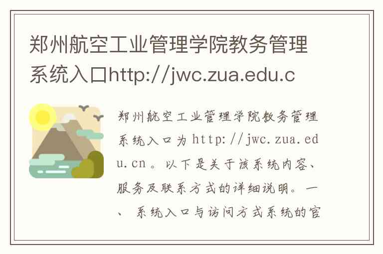 郑州航空工业管理学院教务管理系统入口为 http://jwc.zua.edu.cn 。以下是关于该系统内容、服务及联系方式的详细说明。