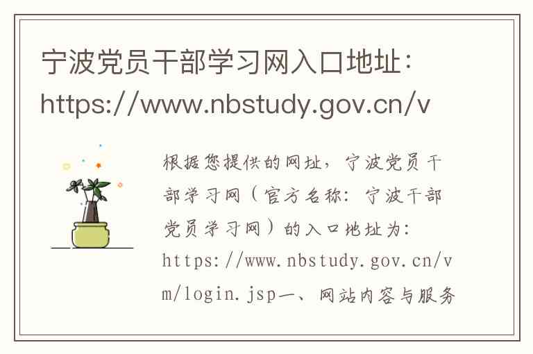 根据您提供的网址,宁波党员干部学习网(官方名称:宁波干部党员学习网)的入口地址为: