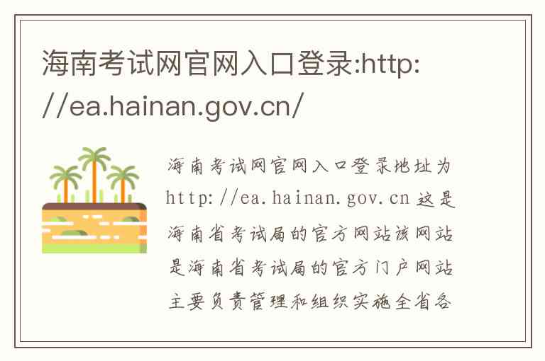 海南考试网官网入口登录地址为http://ea.hainan.gov.cn 这是海南省考试局的官方网站