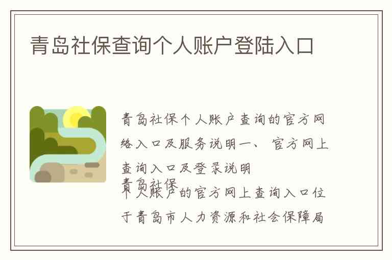 青岛社保个人账户的官方网上查询入口位于青岛市人力资源和社会保障局官方网站的网上办事大厅。