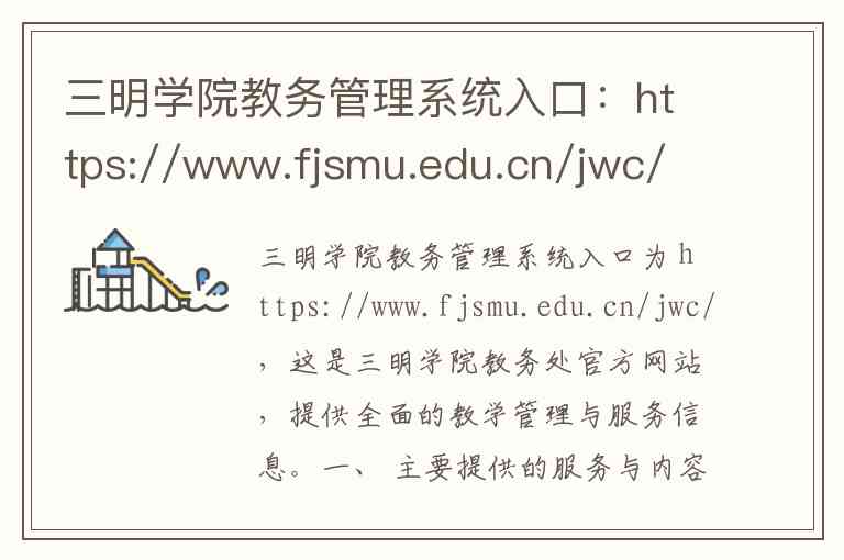 三明学院教务管理系统入口为 https://www.fjsmu.edu.cn/jwc/,这是三明学院教务处官方网站,提供全面的教学管理与服务信息。
