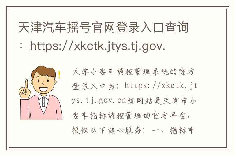 该网站是天津市小客车指标调控管理的官方平台,提供以下核心服务: