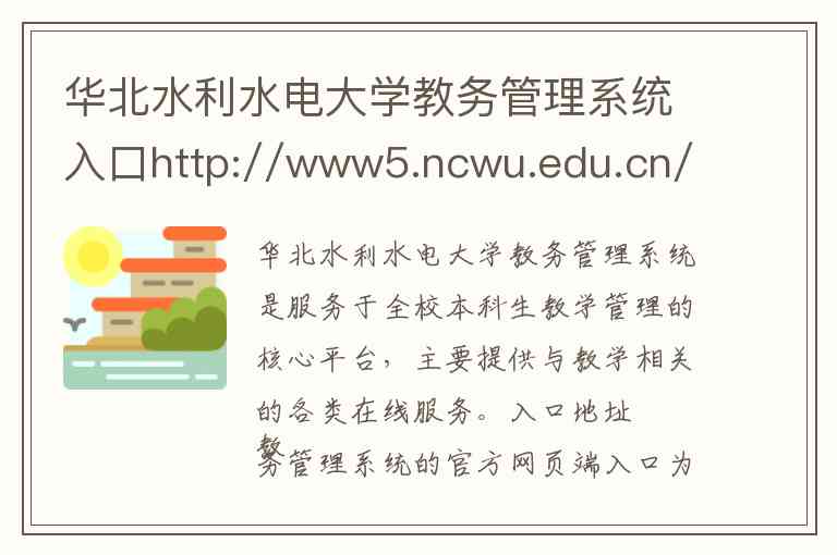 华北水利水电大学教务管理系统是服务于全校本科生教学管理的核心平台,主要提供与教学相关的各类在线服务。
