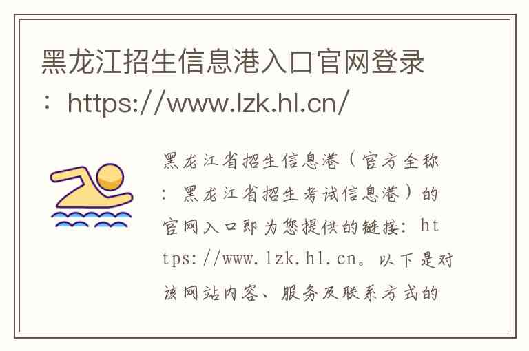 黑龙江省招生信息港(官方全称:黑龙江省招生考试信息港)的官网入口即为您提供的链接:https://www.lzk.hl.cn。以下是对该网站内容、服务及联系方式的详细说明: