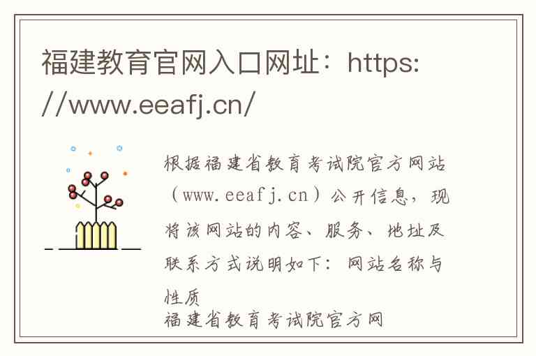 根据福建省教育考试院官方网站(www.eeafj.cn)公开信息,现将该网站的内容、服务、地址及联系方式说明如下: