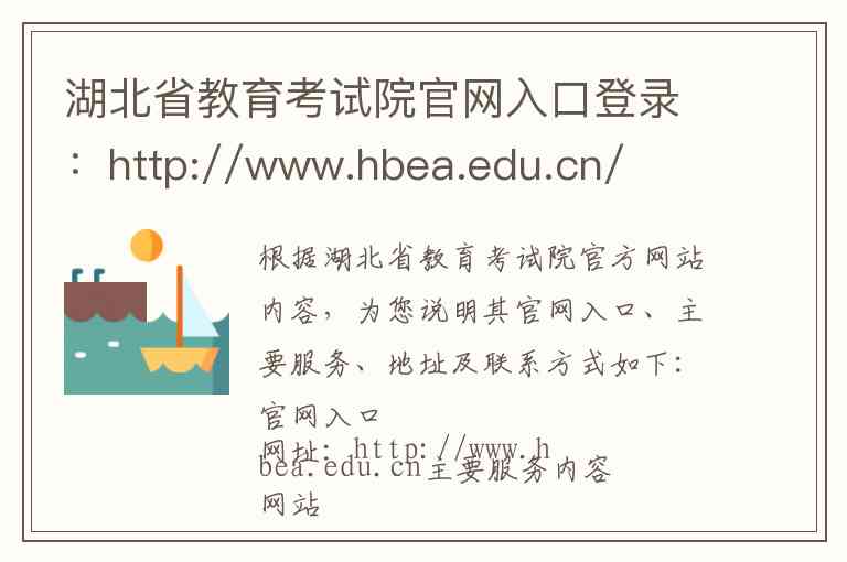 根据湖北省教育考试院官方网站内容,为您说明其官网入口、主要服务、地址及联系方式如下: