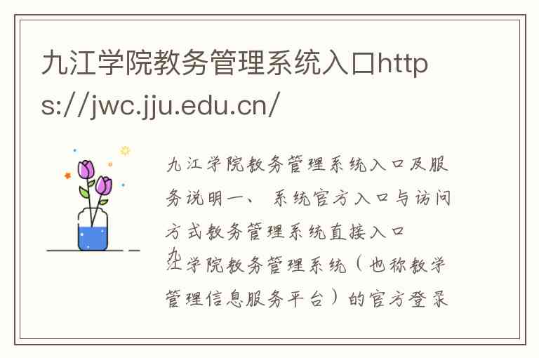 九江学院教务管理系统(也称教学管理信息服务平台)的官方登录网址为:https://zhjw1.jju.edu.cn/jwglxt/xtgl/login_slogin.html