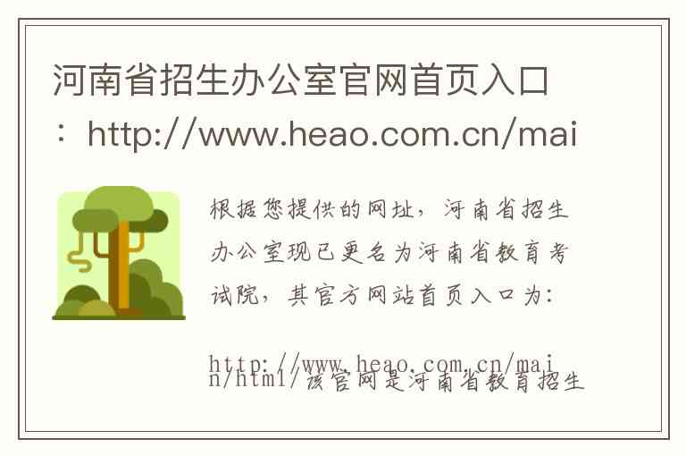 根据您提供的网址,河南省招生办公室现已更名为河南省教育考试院,其官方网站首页入口为: