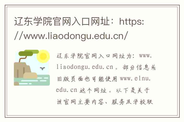 辽东学院官网入口网址为:www.liaodongu.edu.cn 。部分信息或旧版页面也可能使用 www.elnu.edu.cn 这个网址 。