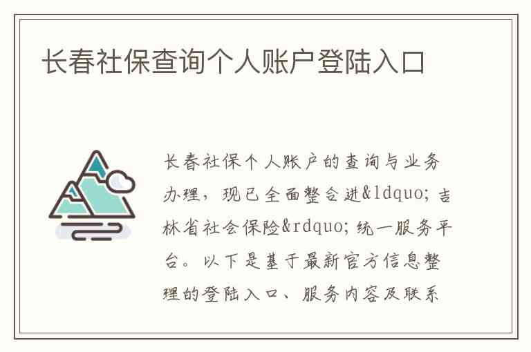 长春社保个人账户的查询与业务办理,现已全面整合进“吉林省社会保险”统一服务平台。以下是基于最新官方信息整理的登陆入口、服务内容及联系方式。
