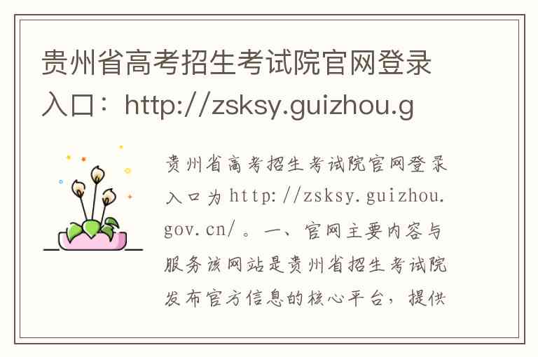 贵州省高考招生考试院官网登录入口为 http://zsksy.guizhou.gov.cn/ 。