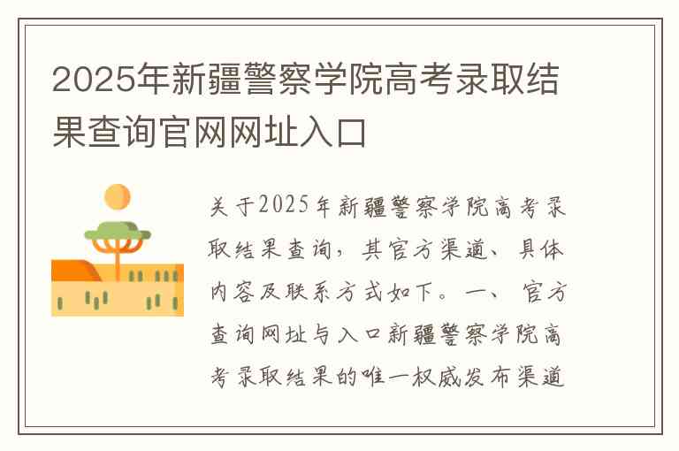 关于2025年新疆警察学院高考录取结果查询,其官方渠道、具体内容及联系方式如下。