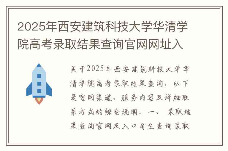 关于2025年西安建筑科技大学华清学院高考录取结果查询,以下是官网渠道、服务内容及详细联系方式的综合说明。