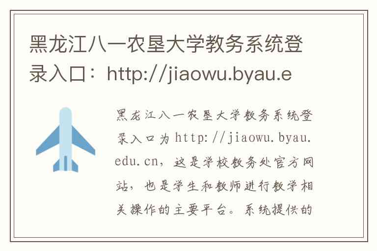 黑龙江八一农垦大学教务系统登录入口为 http://jiaowu.byau.edu.cn,这是学校教务处官方网站,也是学生和教师进行教学相关操作的主要平台。