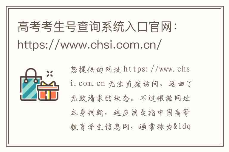 您提供的网址 https://www.chsi.com.cn 无法直接访问,返回了无效请求的状态。不过根据网址本身判断,这应该是指中国高等教育学生信息网,通常称为“学信网”。它确实是官方指定的高考考生号查询、高考成绩验证、学籍学历电子注册信息查询的核心平台。