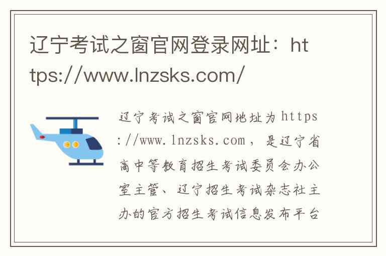 辽宁考试之窗官网地址为 https://www.lnzsks.com ,是辽宁省高中等教育招生考试委员会办公室主管、辽宁招生考试杂志社主办的官方招生考试信息发布平台。