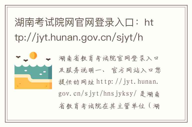 您提供的网址 http://jyt.hunan.gov.cn/sjyt/hnsjyksy/ 是湖南省教育考试院在其主管单位(湖南省教育厅)网站下的官方机构页面。