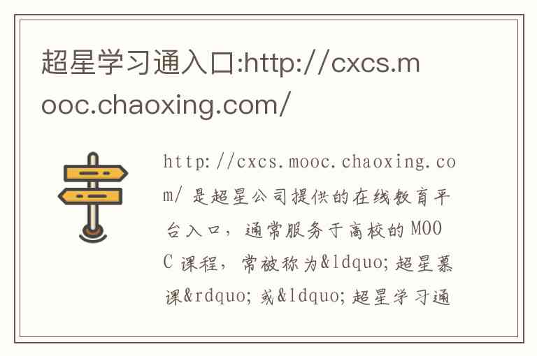 http://cxcs.mooc.chaoxing.com/ 是超星公司提供的在线教育平台入口,通常服务于高校的 MOOC 课程,常被称为“超星慕课”或“超星学习通”的网页端入口。