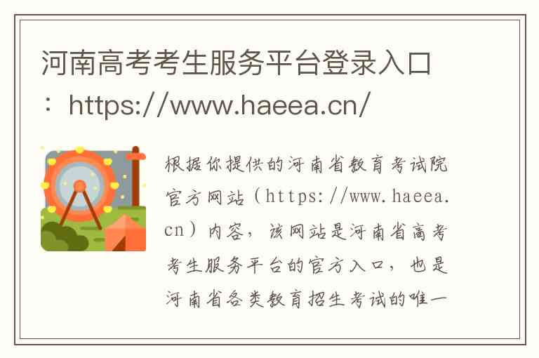 根据你提供的河南省教育考试院官方网站(https://www.haeea.cn)内容,该网站是河南省高考考生服务平台的官方入口,也是河南省各类教育招生考试的唯一权威信息发布平台。以下为你详细说明其内容、服务、地址及联系方式: