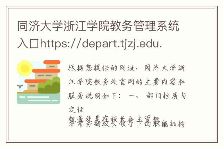 根据您提供的网址,同济大学浙江学院教务处官网的主要内容和服务说明如下: