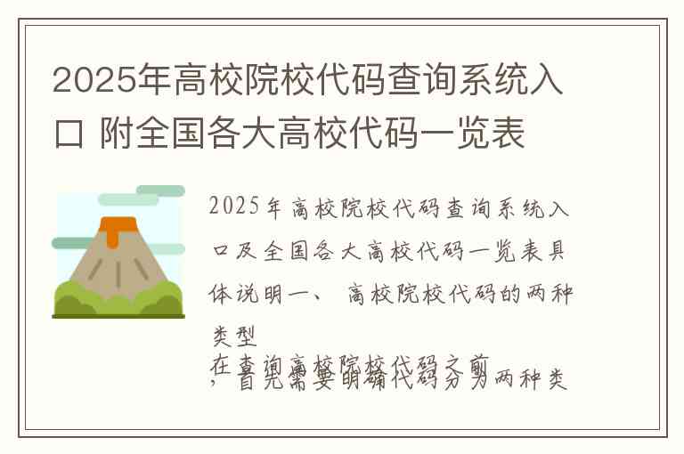 2025年高校院校代码查询系统入口及全国各大高校代码一览表具体说明