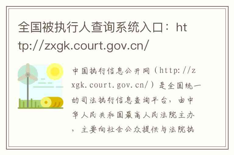 中国执行信息公开网(http://zxgk.court.gov.cn/)是全国统一的司法执行信息查询平台,由中华人民共和国最高人民法院主办,主要向社会公众提供与法院执行案件相关的公开信息查询服务。