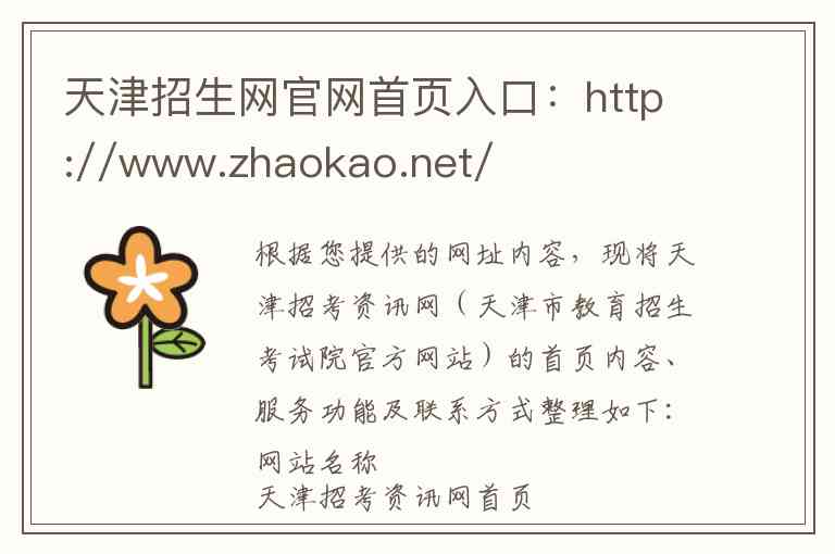 根据您提供的网址内容,现将天津招考资讯网(天津市教育招生考试院官方网站)的首页内容、服务功能及联系方式整理如下: