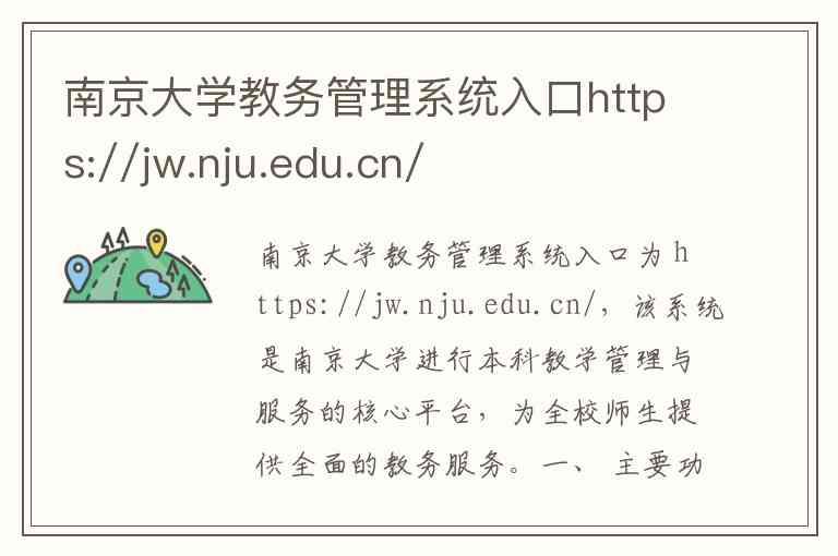 南京大学教务管理系统入口为 https://jw.nju.edu.cn/,该系统是南京大学进行本科教学管理与服务的核心平台,为全校师生提供全面的教务服务。