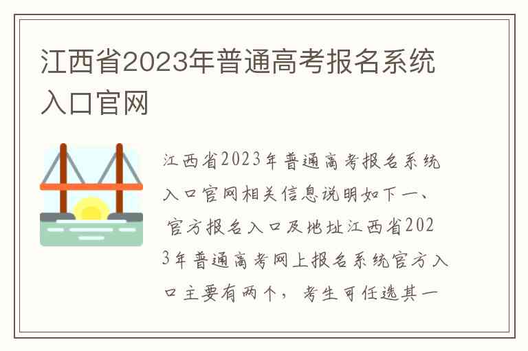 江西省2023年普通高考报名系统入口官网相关信息说明如下