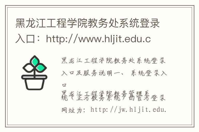 您也可以从黑龙江工程学院教务处官网首页(http://jwc.hljit.edu.cn/)点击相关链接进入 。请注意,您提供的网址(http://www.hljit.edu.cn/Category_31/Index.aspx)可能为学校官网的旧版教务处信息页面,建议直接使用上述教务系统链接进行选课或查询。