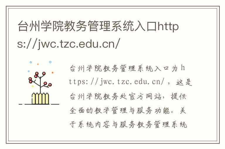 台州学院教务管理系统入口为 https://jwc.tzc.edu.cn/ ,这是台州学院教务处官方网站,提供全面的教学管理与服务功能。