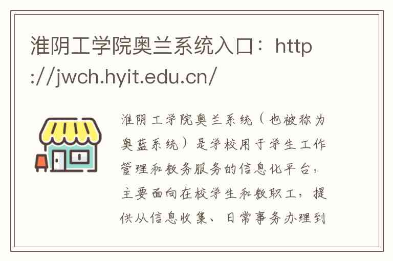淮阴工学院奥兰系统(也被称为奥蓝系统)是学校用于学生工作管理和教务服务的信息化平台,主要面向在校学生和教职工,提供从信息收集、日常事务办理到资助申请等一系列线上服务。