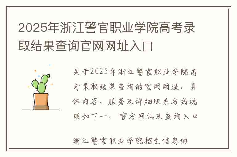 关于2025年浙江警官职业学院高考录取结果查询的官网网址、具体内容、服务及详细联系方式说明如下