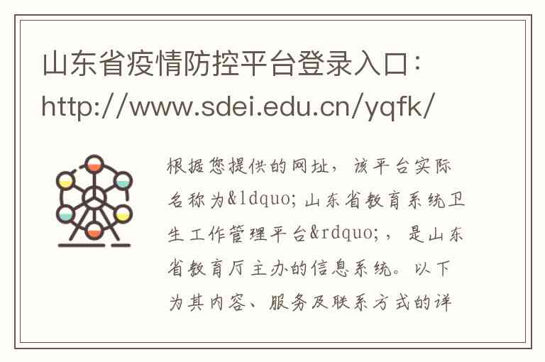 根据您提供的网址,该平台实际名称为“山东省教育系统卫生工作管理平台”,是山东省教育厅主办的信息系统。以下为其内容、服务及联系方式的详细说明: