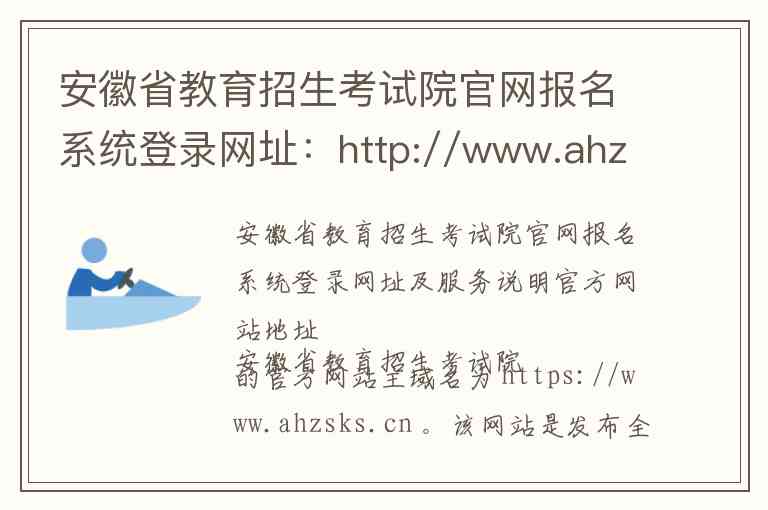 安徽省教育招生考试院的官方网站主域名为 https://www.ahzsks.cn 。该网站是发布全省各类教育招生考试政策、通知、报名信息及提供成绩查询、志愿填报等服务的唯一官方平台。考生需注意,具体的网上报名或志愿填报入口通常位于网站首页的对应栏目或通过专门的链接进入,例如普通高考志愿填报系统入口通常为 xgk.ahzsks.cn ,而分类考试等报名入口则为 gkbm.ahzsks.cn 。