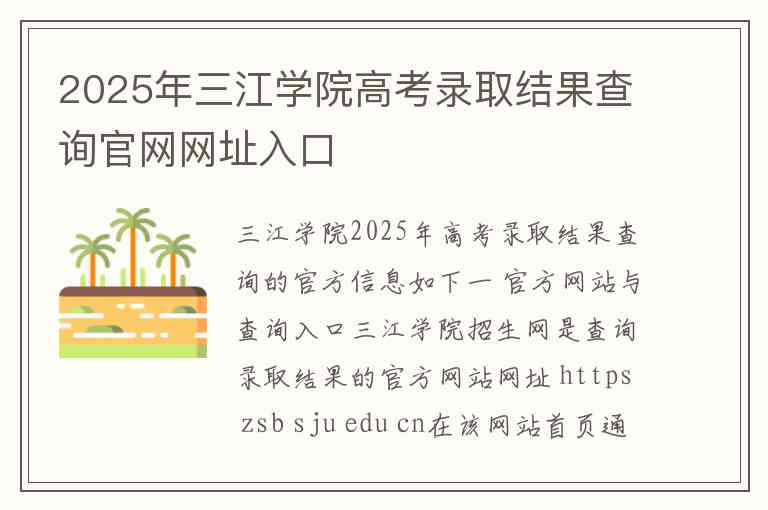三江学院提供了智慧招生微信小程序查询渠道考生可在微信中搜索三江学院智慧招生进入小程序后找到录取查询功能按指引操作即可