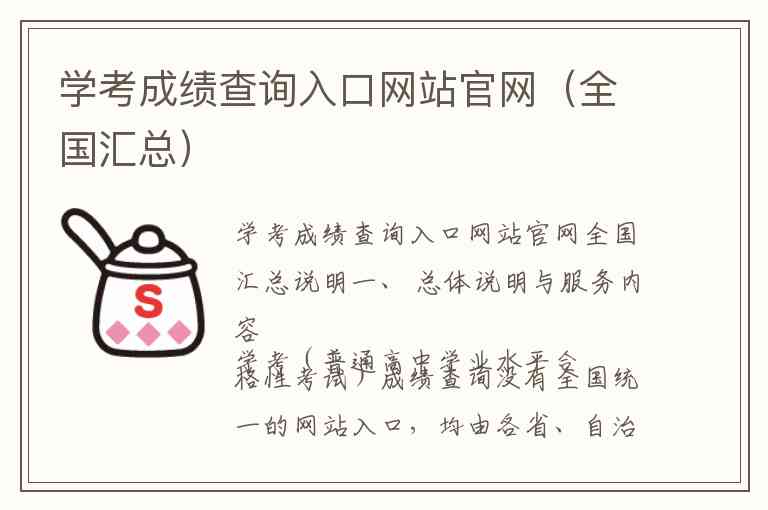 学考(普通高中学业水平合格性考试)成绩查询没有全国统一的网站入口,均由各省、自治区、直辖市的教育考试院(或招生考试委员会办公室)独立负责。所有官方服务均通过省级教育考试机构提供的平台进行。