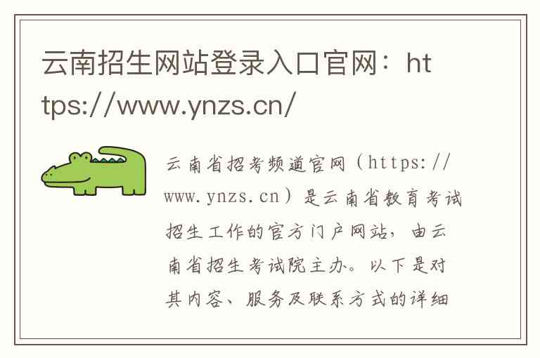 云南省招考频道官网(https://www.ynzs.cn)是云南省教育考试招生工作的官方门户网站,由云南省招生考试院主办。以下是对其内容、服务及联系方式的详细说明: