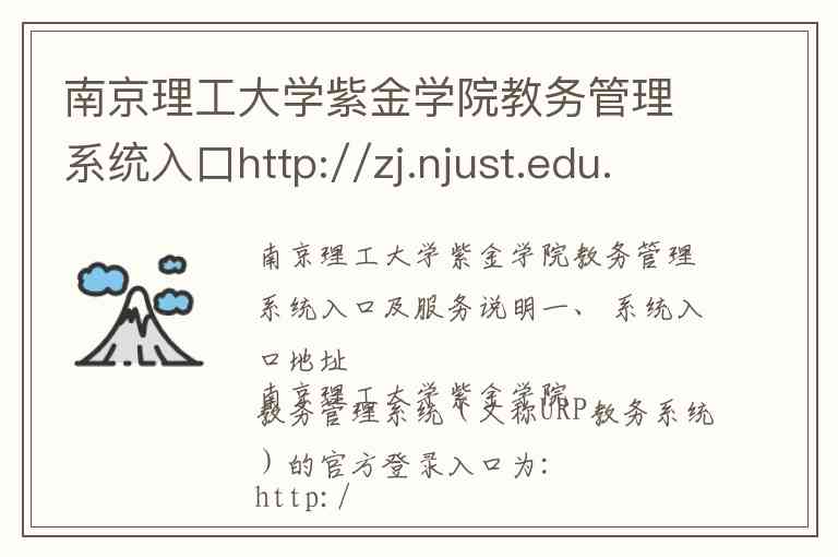 南京理工大学紫金学院教务管理系统(又称URP教务系统)的官方登录入口为: