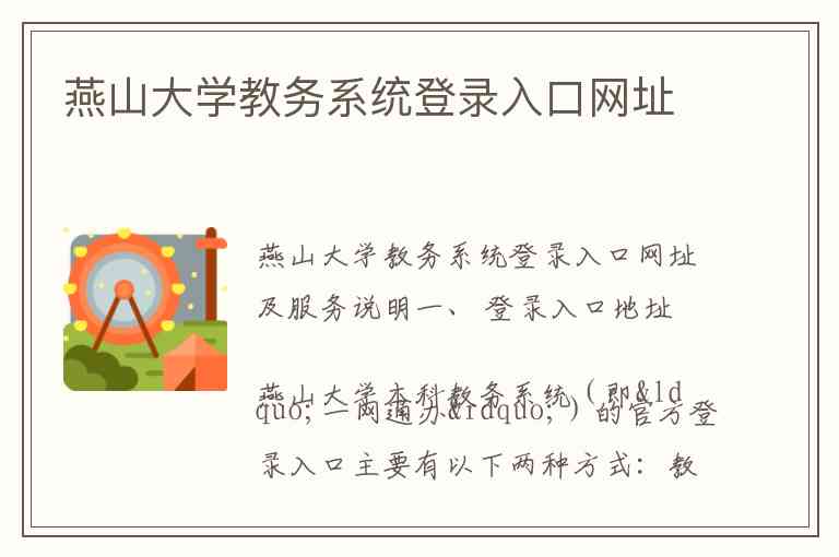用户可通过访问燕山大学教务处官方网站(网址:http://jwc.ysu.edu.cn),点击页面上的“本科教务系统”链接进行登录。