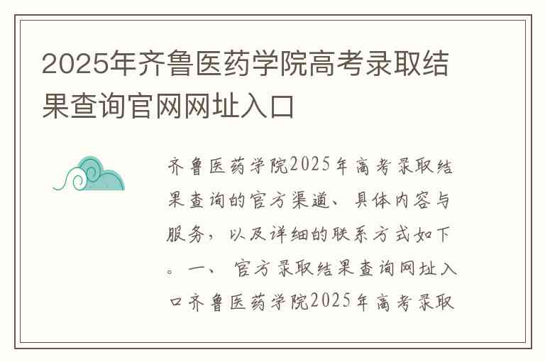 齐鲁医药学院2025年高考录取结果查询的官方渠道、具体内容与服务,以及详细的联系方式如下。