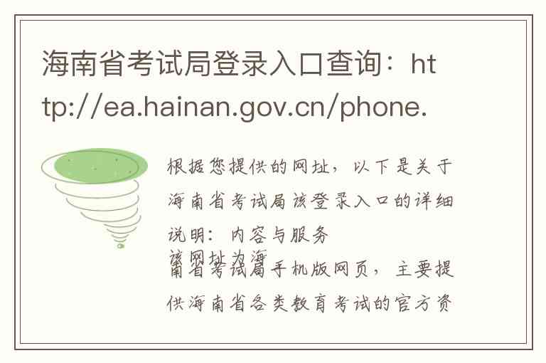 根据您提供的网址,以下是关于海南省考试局该登录入口的详细说明: