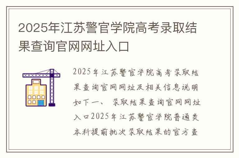 2025年江苏警官学院高考录取结果查询官网网址及相关信息说明如下